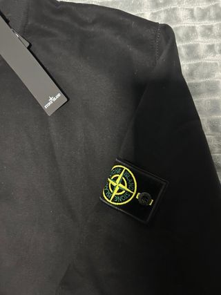 Camisola da marca Stone Island em preto. - Logo da Stone Island na manga.