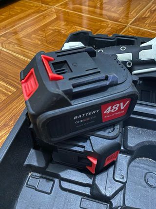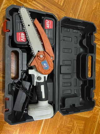 Mini serra elétrica portátil, ideal para trabalhos diversos. Acompanha duas baterias e carregador. - Design compacto e leve. - Inclui duas baterias de lítio. (Nao sei a porencia ao certo) - Carregador de bateria. - Maleta para transporte.