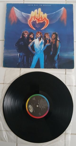 Vinil do álbum Long Way to Heaven da banda Helix. A capa apresenta um desgaste leve, mas o disco está em bom estado. - Mídia: VG+ - Capa: VG