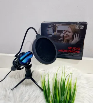 Microfone USB com iluminação RGB. - Design moderno. - Conexão USB.