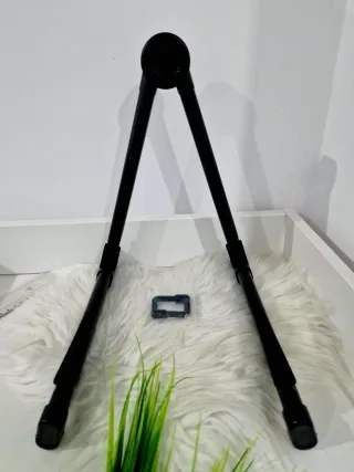 Suporte de chão dobrável para guitarra. - Cor preta. - Design compacto e portátil. - Inclui acessório de segurança.