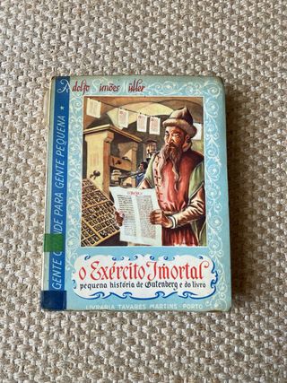 Adolfo Simões Müller O Exército Imortal Pequena história de Gutenberg e do livro. Autor(a) Adolfo Simões Müller Editora Tavares Martins Género Literário Drama Histórico Outro Idioma Português Págs.228 Edição de 1964* Livraria Tavares Martins Livro lido,muito bem estimado,sem nada rasgado nem riscado. Capa com pequenos sinais de manuseamento e vestígios de fita-cola. Veja fotografias e o meus anuncios por favor, tenho outro livro de Müller