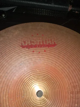 Prato Ufip Kashian Crash de 16 polegadas. Tem uma pequena mossa no bell como se pode ver nas fotos mas continua com bom som