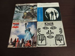 Conjunto de 4 singles de música pop rock, edições portuguesas. - The Proclaimers - Letter From America - The Christians - Born Again (Remix) - The Stranglers - Big In Amerika - XTC - Senses Working Overtime