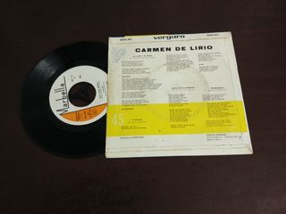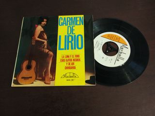 Disco de vinil de Carmen de Lirio com as músicas La Luna y El Toro, Esos Ojitos Negros e Y de ahí Chihuahua. - Selo: Marbella - Referência: 2015-XC - Formato: 45 RPM