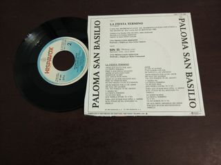 Vinil de Paloma San Basilio com o single La Fiesta Terminó. - Disco de 7 polegadas. - Selo Hispavox.