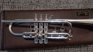 Trompete profissional em Dó, modelo A. Courtois (Large Bore). O trompete é vendido com estojo, mas sem bocal. O instrumento encontra-se em excelente estado de conservação. Acresce a tubagem para construção em Bb. Condição: A prata está 99% intacta. O trompete pode apresentar algumas marcas de uso, mas são completamente irrelevantes tendo em conta o seu estado e funcionalidade. A compressão dos pistões é ótima e os tubos deslizantes funcionam perfeitamente. As válvulas são super rápidas e leves. O instrumento não requer limpeza ou manutenção. Não há mossas, podendo haver pequenas marcas, mas não as consigo mostrar nas fotos