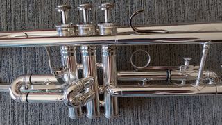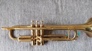 Trompete Besson Meha modelo large Bore, com muito boa compressão, as bombas funcionam livres. O verniz penso que não é original, mas o que tem foi aplicado profissionalmente. Aproximadamente 80% presente no instrumento. O instrumento não necessita de qualquer reparação foi intervencionado recentemente pelo Caeiro, correção de reparações mal feitas anteriormente, mossas no sino e leadpipe, ajuste das bombas. Este trabalho conferiu uma melhor performance ao instrumento. Numa visão geral é um pedaço de história em excelente estado. A sua principal característica é um som aberto e um timbre brilhante mas não em demasia.