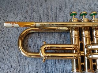Trompete raro, modelo King Symphony 1049S (profissional) já da fábrica de Ohio do ano de 1971. O trompete é vendido sem estojo e sem bocal. O estado do instrumento é excelente. Estado: O prateado está a 96% só tem falta na zona de contacto das mãos, não é percetível nas fotos porque tenho um equipamento de PenPlating fiz uns testes e cobri com prata, mas mesmo assim a zona "afetada" são porções muito pequenas. (envio fotos a detalhar a pedido). Compressão dos pistões mesmo muito boa e slides a funcionar a 100%. As válvulas são super rápidas e leves. O instrumento não necessita de limpeza nem manutenção.