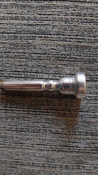 Bocal F. Besson nº3 (raro de encontrar) em bom estado. Prateado não é original e tem uma pequena marca de choque visível numa das fotos.