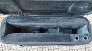 Acessórios para trompete Protec. Saco e bolsa de bocais 100% sobre o ponto de vista da funcionalidade. Esteticamente a bolsa não está muito favorecida. Verdadeiramente a bolsa é nova e teve pouca ou nenhuma utilização exterior, como se pode ver na última foto. Só foi utilizada para guardar bocais. Por não ser pele natural a camada de imitação de pele está a esfoliar. Tirando o defeito estético a bolsa está nova. O saco está limpo e em bom estado de conservação os fechos são fortes e estão 100%. Exteriormente e interiormente em termos de aspeto está em muito bom estado.