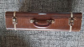 O estojo está nas condições que se pode ver nas fotos. Os fechos, dobradiças e o funcionamento interno para a sua idade estão bastante funcionais. - Cor castanha. - Fechos metálicos. - Alça de transporte em pele.