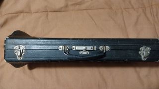 O estojo está nas condições que se pode ver nas fotos. Os fechos, dobradiças e o funcionamento interno para a sua idade estão funcionais. - Detalhe circular em metal na parte frontal. - Fechos e dobradiças em metal. - Alça de transporte emborrachada.