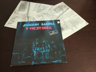 Disco de vinil Joaquim Sabina y Viceversa - En Directo. - Capa com design de palco. - Inclui encarte com letras.
