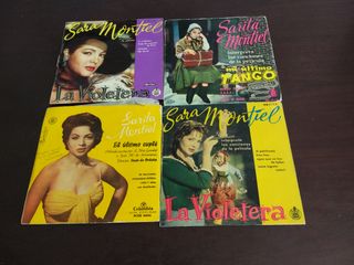 Conjunto de 4 discos EP de Sarita Montiel. - La Violetera - El último cuplé - Interpreta las canciones de la película El último tango - Incluye canciones como El polichinelo y Fumando espero
