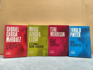 Valor unitário, preço especial para lotes. Em bom estado, mas começa a ser visível a passagem do tempo. "A Aventura deM iguel Littin Clandestino no Chile", Gabriel García Márquez "Lituma nos Andes", Mário Vargas Llosa "Be Loved", Toni Morrison "Os Anões", Harold Pinter