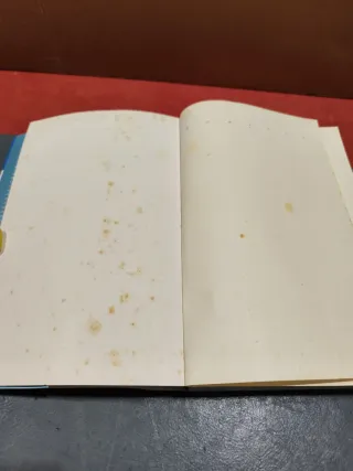 A capa e contracapa têm marcas e o livro está um pouco "empenado" por ter estado mal guardado. Tem marcas na primeira página.