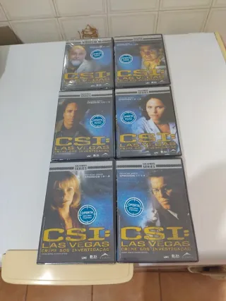 Conjunto de DVDs da série CSI Las Vegas. - Primeira série, episódios 1.1-1.4 - Primeira série, episódios 1.5-1.8 - Primeira série, episódios 1.9-1.12 - Primeira série, episódios 1.13-1.16 - Primeira série, episódios 1.17-1.20 - Primeira série, episódios 1.21-1.23