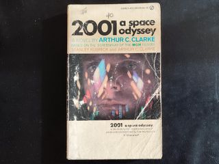 2001: A Space Odyssey Livro de ficção científica publicado em 1968, da autoria de Arthur C. Clarke. Edição norte-americana, em língua inglesa; finais da década de 1970. Inclui diversas páginas com fotos do filme de Stanley Kubrick.