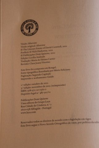 Silverview de John le Carré Obra póstuma de le Carré - e a única que deixou acabada -, Silverview é a história de um livreiro que se vê envolvido num caso de espionagem. ISBN: 9789722073622 Ano: 10-2021 Editor: Dom Quixote Idioma: Português Dimensões: 156 x 235 x 17 mm Encadernação: Capa mole Páginas: 264 Livro em bom estado de leitura, com sinais da passagem do tempo. Capa e contracapa com marcas de manuseio mas nada que comprometa a leitura como podem comprovar nas fotografias.(1.31)
