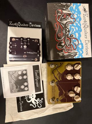 Pedal de guitarra EarthQuaker Devices Hoof Reaper. - Incluye caja original. - Incluye manual de operación. - Incluye bolsa de tela. - Diseño con pulpo y paisaje.
