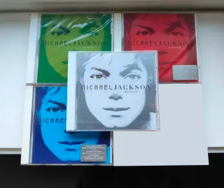 Coleção de CDs do álbum Invincible de Michael Jackson, com capas colecionáveis. - Inclui 16 músicas novas. - Mais de 77 minutos de música. - Capas colecionáveis. - O CD branco e cinza e o verde ainda estão celados. - O CD laranja já foi vendido.