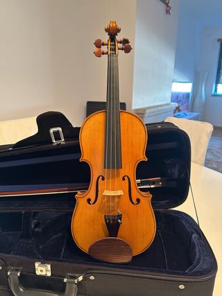 Violino em excelente estado, pronto para tocar. Inclui caixa para transporte e arco. Sem etiqueta interior.