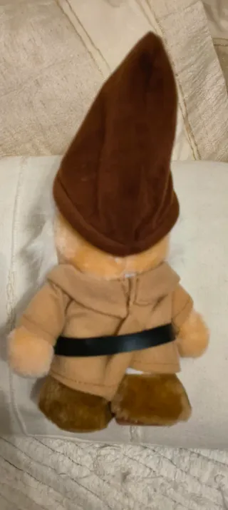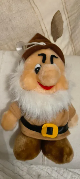 Peluche de um dos anões da Branca de Neve. Perfeito para colecionadores ou para decorar. - Detalhes bordados no rosto. - Roupa marrom com cinto preto e fivela amarela. - Barba e cabelo brancos e felpudos.