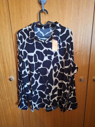 Camisa com um padrão único e moderno. - Padrão de manchas em bege e preto. - Tecido leve e confortável.