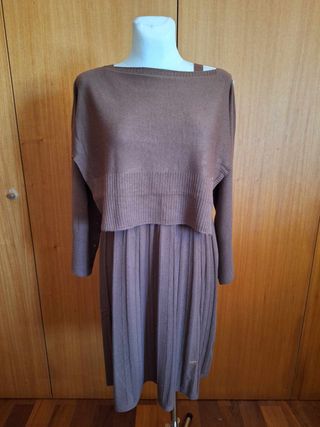 Conjunto de malha elegante e versátil. - Malha macia e confortável. - Design moderno com saia plissada. - Detalhe de etiqueta discreta.