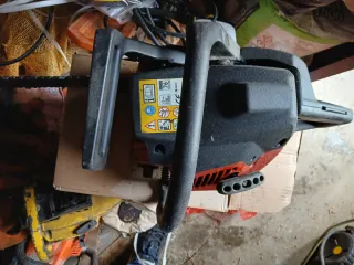 Motosserra Jonsered CS2240 em bom estado. - Cor: Vermelho e preto. - Design robusto.