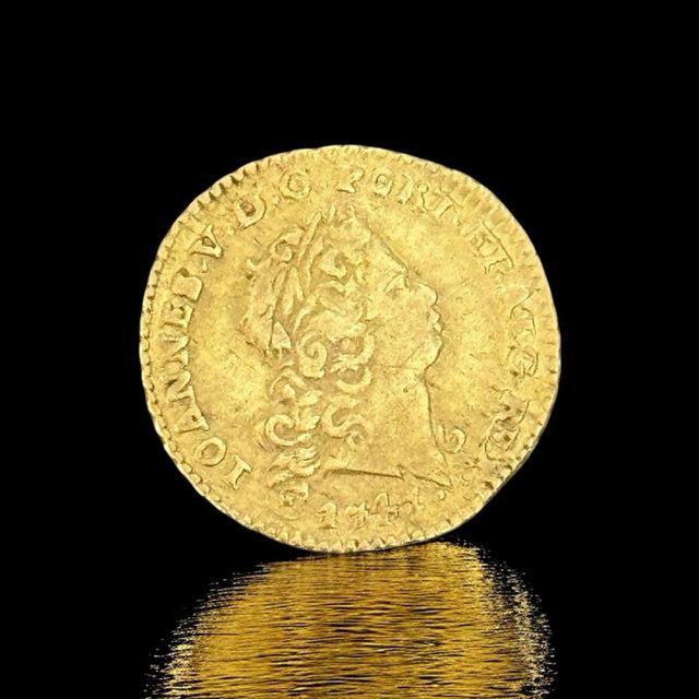 1/2 escudo, 800 reis de Portugal de 1747. Moeda de ouro 22K (toque 917‰) com 1,74g. Moeda em excelente estado de conservação. Envio em 24h.