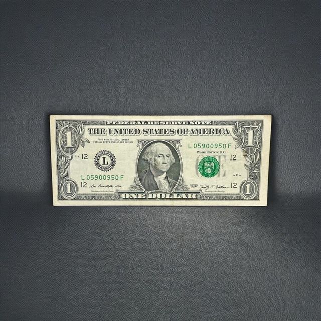 Detalhes do produtoNota de 1 dollar dos Estados Unidos da América de 2009. Número de série em capicua “L 05900950 F”.