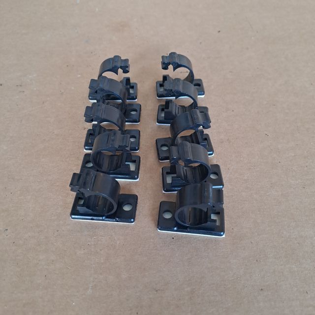 Detalhes do produtoConjunto de 10 abraçadeiras com adesivo pretas para organizar e segurar cabos.