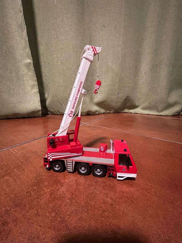 - Um carro bombeiros vermelho com guindaste.