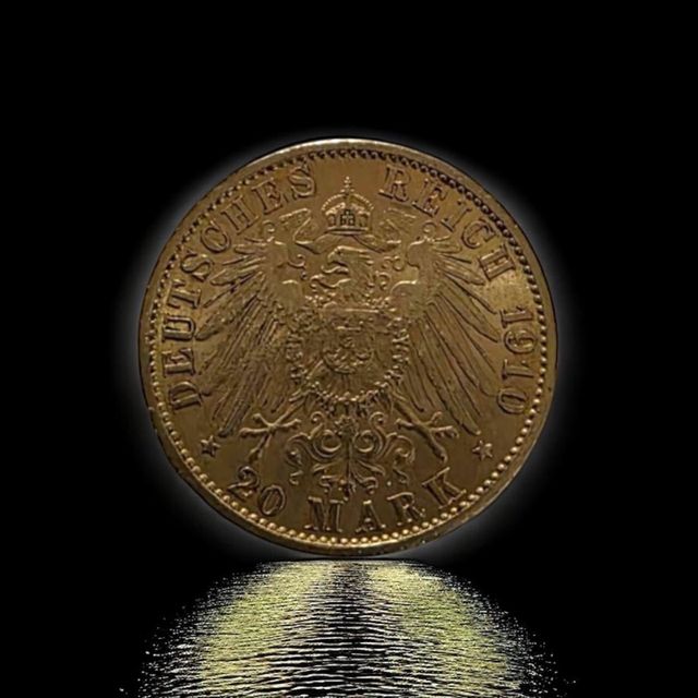 Detalhes do produto20 Marcos da Alemanha de 1910 Moeda de Ouro 21,6K (toque 900‰) com 7,97g.