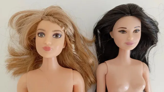 Lote de duas bonecas Barbie. - Boneca com cabelo preto. - Boneca com cabelo loiro e trança.