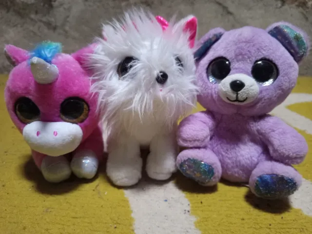 3 Peluches: Unicórnio, Cão e Urso