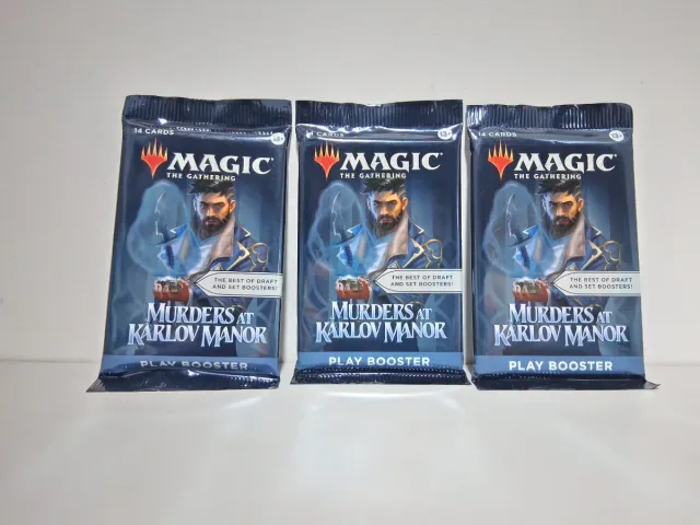 Detalhes do produtoTrês boosters de jogo de Magic: The Gathering, coleção Murders at Karlov Manor.