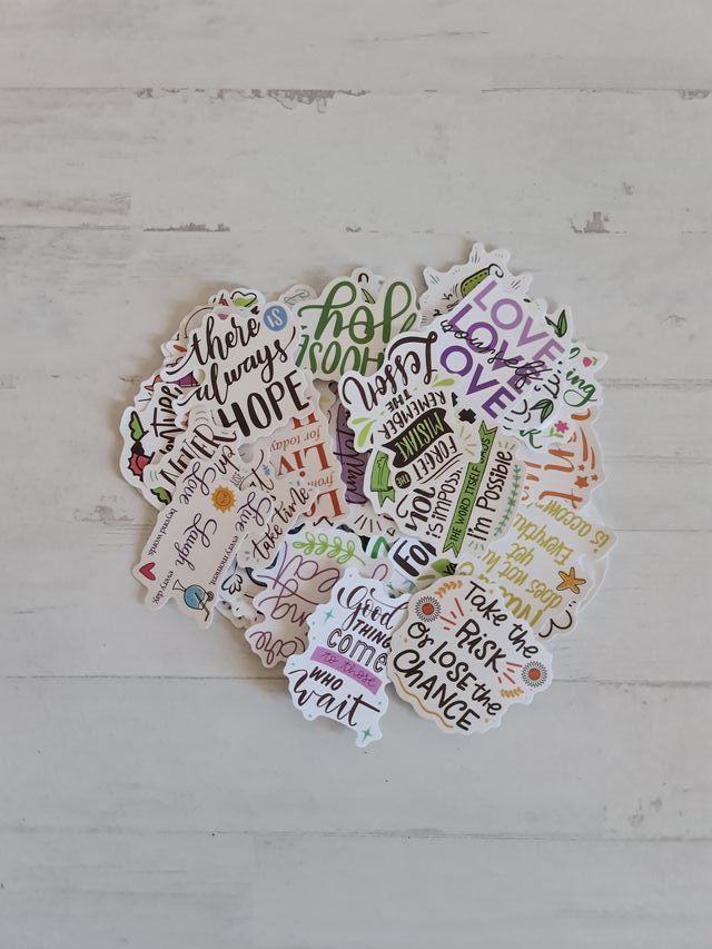 Detalhes do produtoColeção de vários autocolantes (50 unidades sem repetição) temáticos - motivação, frases inspiradoreas, quotes, etc. Para aplicação em várias superfícies - computador, telemóvel, carro, casa, vidros, etc. Resistentes à agua. Artigo novo e embalado.
