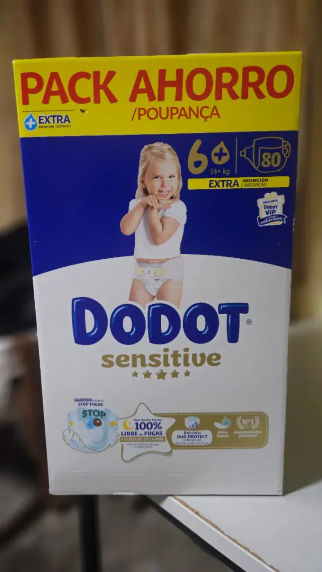 Detalhes do produtoPack de 80 fraldas Dodot Sensitive, tamanho 6+.