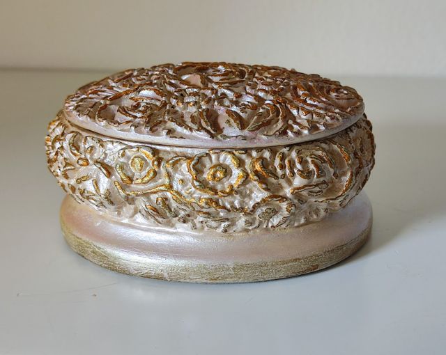 Antigo guarda joias em marfinite circular e tampa