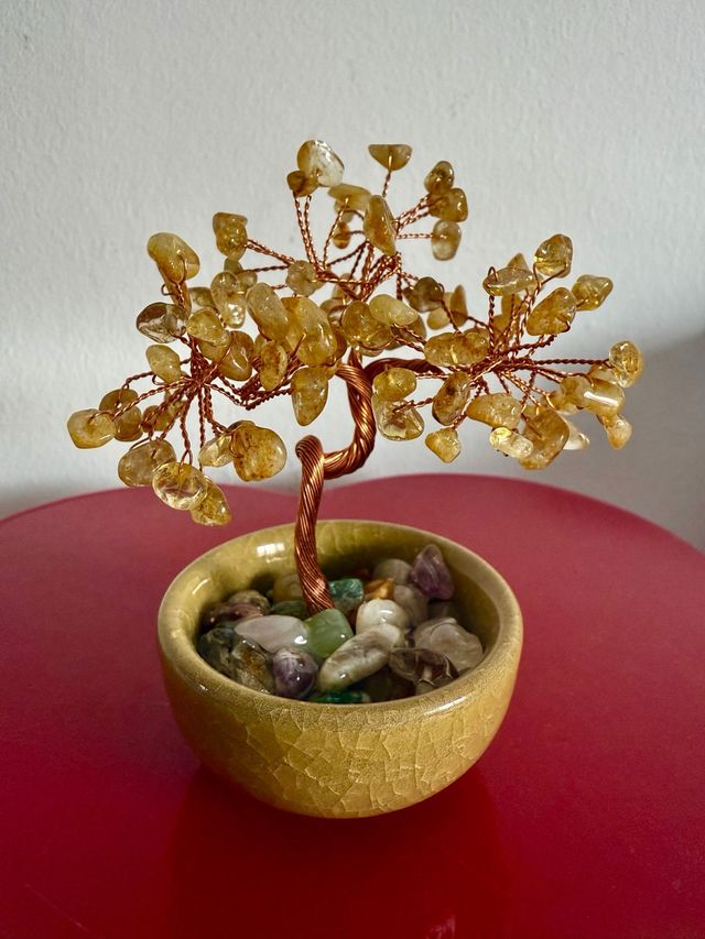 Linda árvore da vida feita com pedras de citrino e ágata. Uma peça delicada e única para decoração.