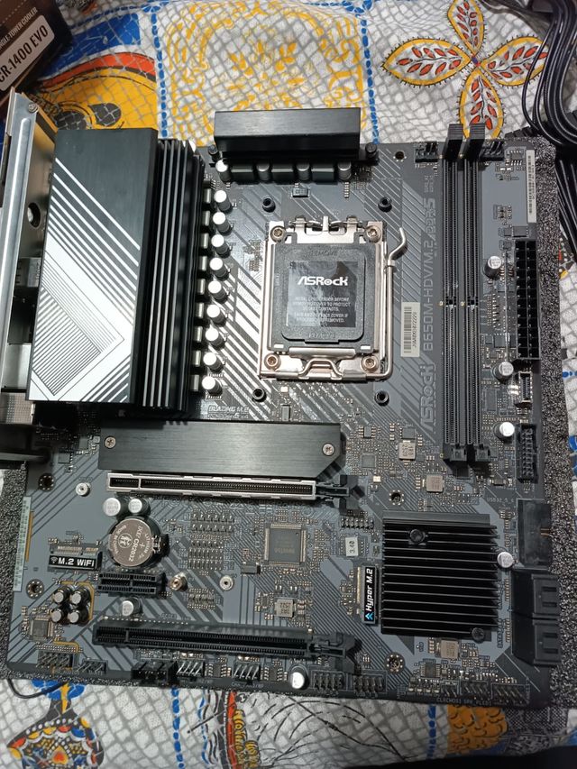 Detalhes do produtoASRock B650M-HDV/M.2 (AM5). Funciona perfeitamente exceto 1 slot de RAM danificado, usando apenas 1 módulo DDR5 em single-channel (até 64GB). Suporta CPUs Ryzen 7000/8000/9000 graças ao VRM estável e bom arrefecimento. Tem 2×M.2 (Gen5+Gen4), SATA, PCIe 4.0, HDMI/DP e LAN 2.5G rápida. Placa reparada e testada por profissional. Ideal para build económica e atual. Estou disponível para tirar dúvidas e negociar o valor sem problema.
