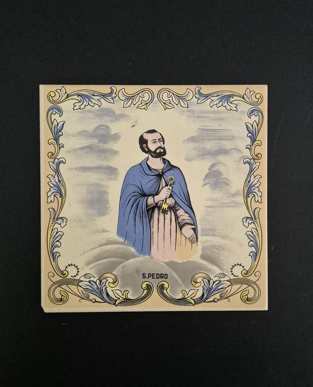 Detalhes do produtoAzulejo antigo com a imagem de São Pedro, proveniente de Portugal.