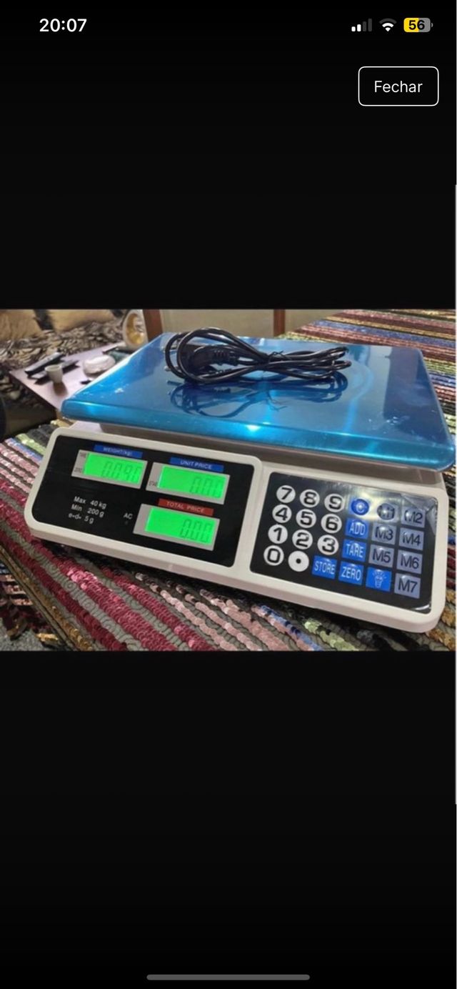 Detalhes do produtoBalança digital com capacidade para pesar até 40 kg. Possui visor em LED verde e teclado numérico.