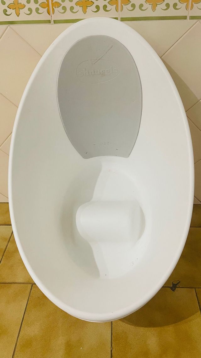 Banheira ergonómica para recém-nascidos. - Design compacto e leve. - Apoio antiderrapante para maior segurança. - Feita em plástico resistente e fácil de limpar.