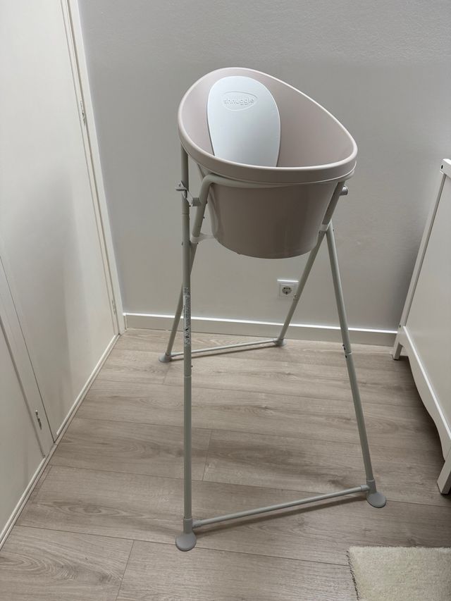 Detalhes do produtoBanheira para bebé Shnuggle em cor taupe, com suporte incluído.