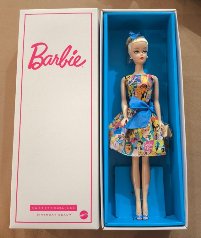 Detalhes do produtoBoneca Barbie Signature Birthday Beau loira, uma edição especial da Mattel.