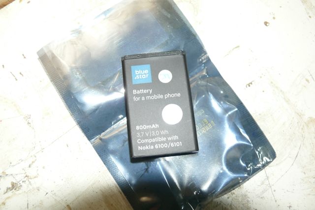 Bateria de substituição para telemóveis Nokia. Nunca usada - Capacidade de 800mAh. - Voltagem de 3,7 V. - Compatível com Nokia 6100 e 6101.
